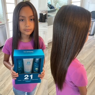 Alisado permante es un proceso tecnico que cambia la estructura del riso, ondulado a liso completamente por 12 meses. Edades de 6 años en adelante. Requiere mantenimiento que el experto recomiende en este caso fue kit 3 pasos Salerm 21.
