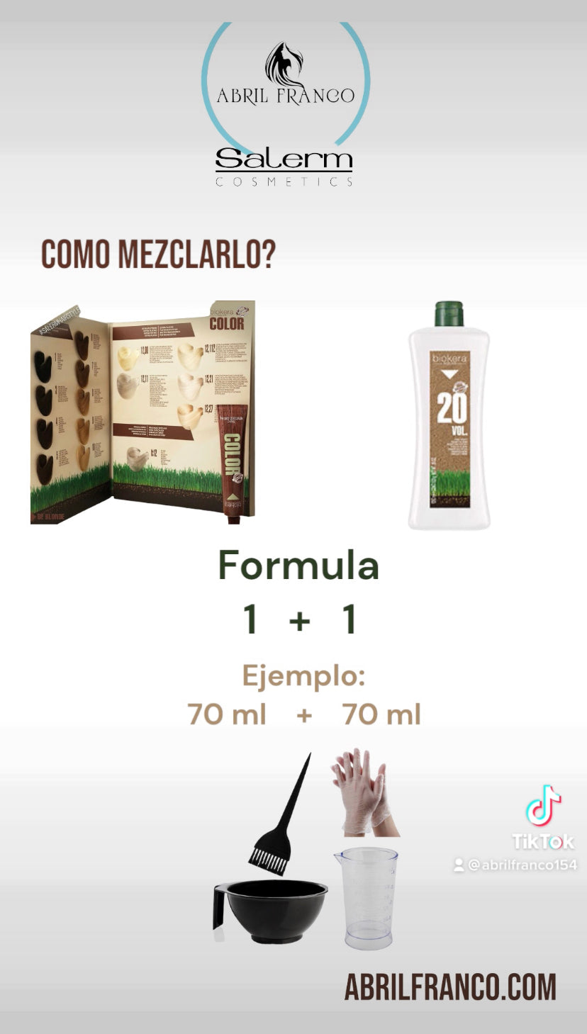 Oxidante específico para colorantes Biokera Natura Color. Actúa como una fuente de oxígeno activo necesaria para desarrollar el color dentro del cabello, respetando al máximo la fibra y el cuero cabelludo.